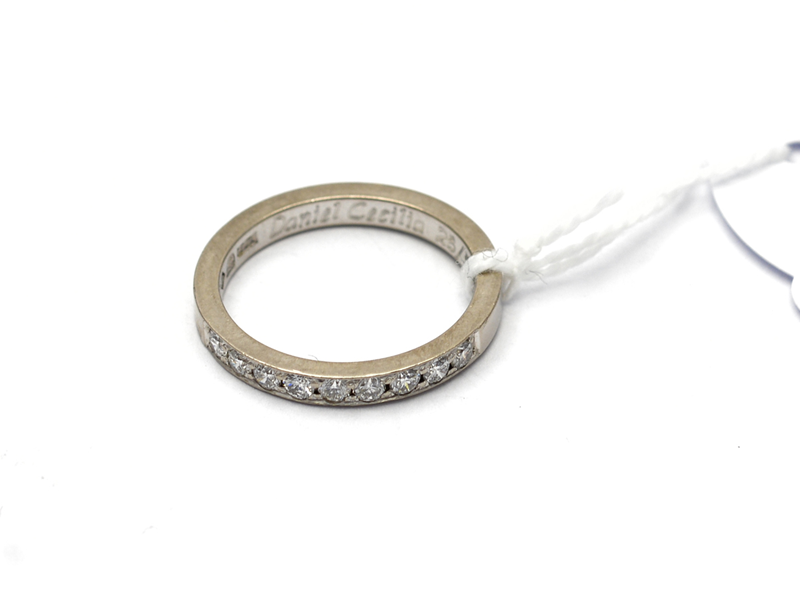 Ring 18K 4,2g, graverad, vitguld, med diamanter 9xca0,04ct