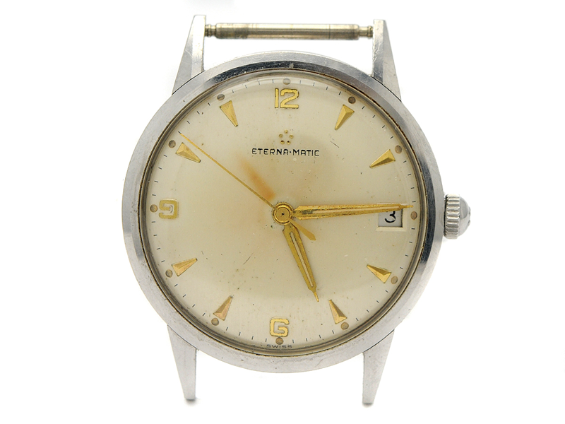 ETERNA-MATIC, herrur, 34 mm, Cal 1246 UC, Serie nr. 3780531, Boett nr. 3627106, stål, automatisk, plexiglas, skadad urtavla, ca 1959.