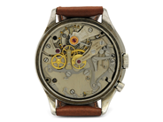 LEMANIA, Tg 195, "Tre kronor", Cal 2225, Serie nr. 1004435, Boett nr. 30/2 / 57-1552, militärmodell, kronograf, herrur, 40 mm, stål, manuell, plexiglas, läderband, ca 1957.