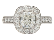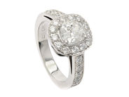 RING, 18K vitguld, kuddslipad diamant 1,01 ct, TW(G)/VS 2, GIA report 5166881354, 23 briljantslipade diamanter 0,56 ctv ca TW/VS, stl 15,5 mm +, vikt 6,1 g.