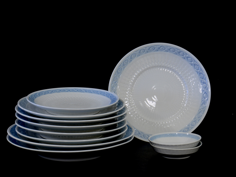 Tallrikar 9st Ø1x16cm 2x22cm 5x19,5cm 1x18,5cm 2 småskålar Ø9cm Kunglig dansk Blå vifte