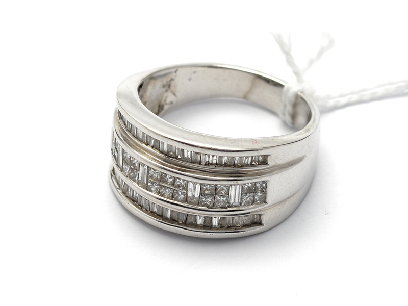 Ring med diamanter princesslipade 26xca0,03ct samt baguetteslipade 40xca0,02ct 18K Ø18½ 10,7g