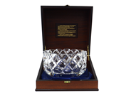 Kristallskål Orrefors Sofiero Gunnar Cyren Ø24cm H14cm graverad För nit och redlighet i rikets tjänst träask