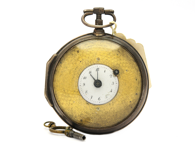FICKUR, 54 mm, silver, spindelgång, nyckeldragare, skadad urtavla, defekt, bucklor, ca 1800, nyckel.