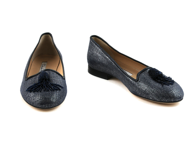 BALLERINASKO, OSCAT DE LA RENTA, marin/silver tyg, marin läder, klack1,2 cm stl 37 1/2, skopåse.