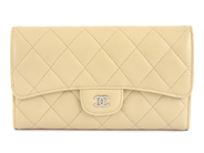 PLÅNBOK, CHANEL, Flap Wallet i ljusbeige caviar läder, 18x11 cm, mynt, sedel, 6st kontokortsfack, cert. samt hologram 15571981, originalask.
