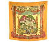 SCARF, HERMÈS, L´Atlantide, Annie Faivre, 100% siden 90x90cm, orange, grön, rost, originalask.