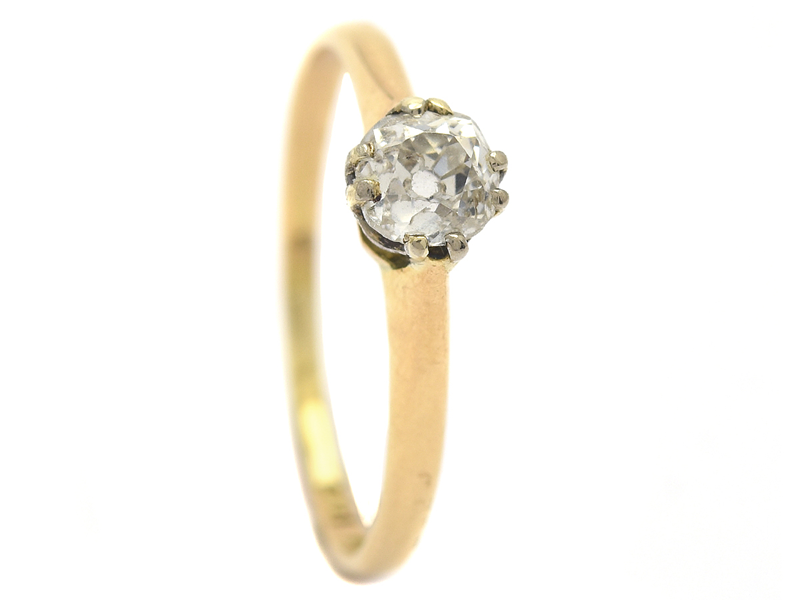 ENSTENSRING, 18K guld, gammalslipad diamant ca 0,40 ct, ca W(H)/VS, stl 17 mm, vikt 1,8 g, nagg vid rondist, skada på paviljongen.