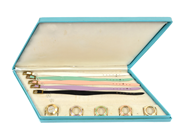 TELL, damur, 19 mm, Boett nr. 1684699 / 5908, doublé (20 micron), manuell, plexiglas, 5 st. ytterboetter i olika färger, 5 st. läderband i olika färger, ca 1965, box.