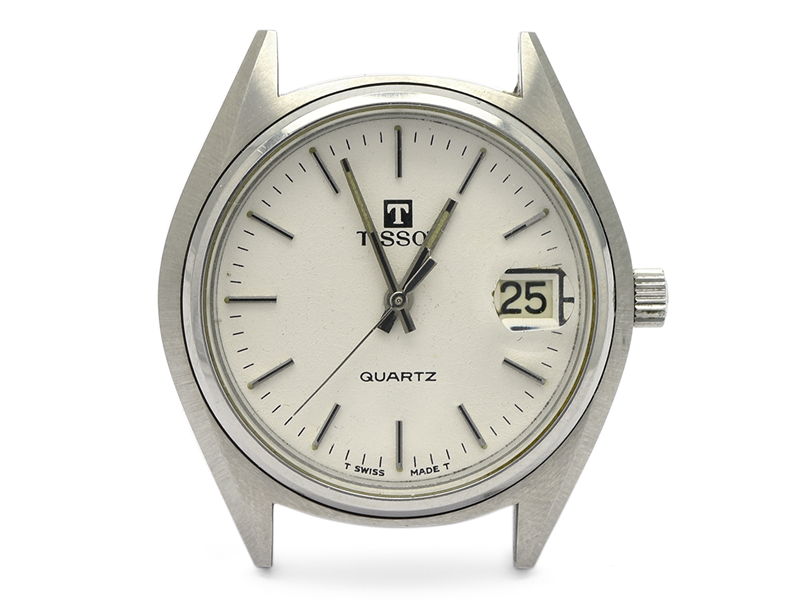 TISSOT, Quartz, Cal 2031, Serie nr. 22282, Boett nr. 140735, herrur, 35,5 mm, stål, quartz, mineralglas, datum, skadad urtavla, ca 1980.