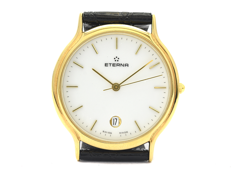 ETERNA, herrur, 34 mm, Serie nr. 61027, Boett nr. 113.0583.22, doublé, quartz, safirglas, datum, läderband, ca 1995.