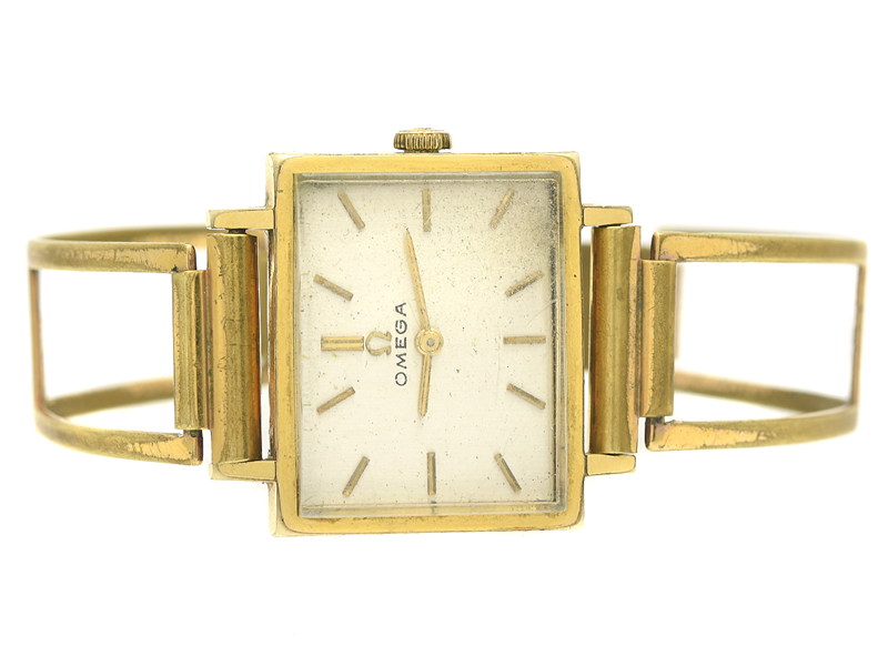 OMEGA, damur, 27 x 22 mm, Cal 620, Serie nr. 19925177, Ref nr. MD 111.001, Boett nr. 111.001, doublé (20 micron), manuell, plexiglas, skadad urtavla, skadad boett, ca 1962, metallänk ej original.