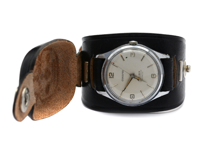 CANDINO, herrur, 35 mm, Boett nr. 13101, vitmetall, manuell, plexiglas, skadad urtavla, skadad boett, läderband, ca 1965.