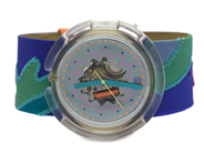 SWATCH, Pop, Soupe De Poisson, Ref nr. PWZ 106, damur, 39 mm, plast, quartz, plexiglas, integrerat textilband, ca 1993, box, nät.