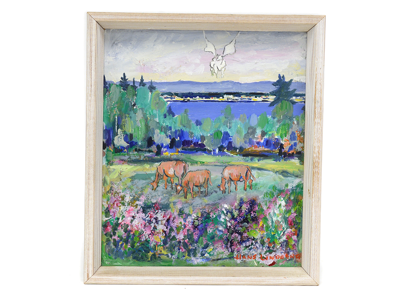 Målning på pannå, inramad, signerad Hans Lindberg, motivmått 21x17,5cm