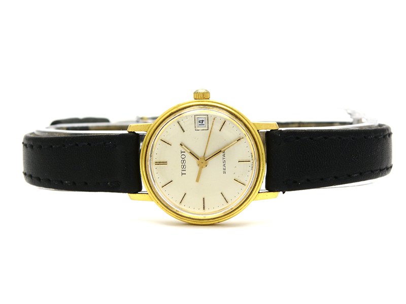 Damur Tissot seastar seven 18K, quartz, repigt plastglas, skadad bakboett, läderarmband