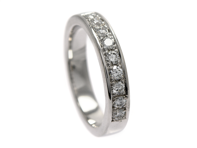 ALLIANSRING, 18K vitguld, 9 briljantslipade diamanter ca 0,35 ctv ca TW/VS, stl 17,25 mm, vikt 7,2 g, gravyr.