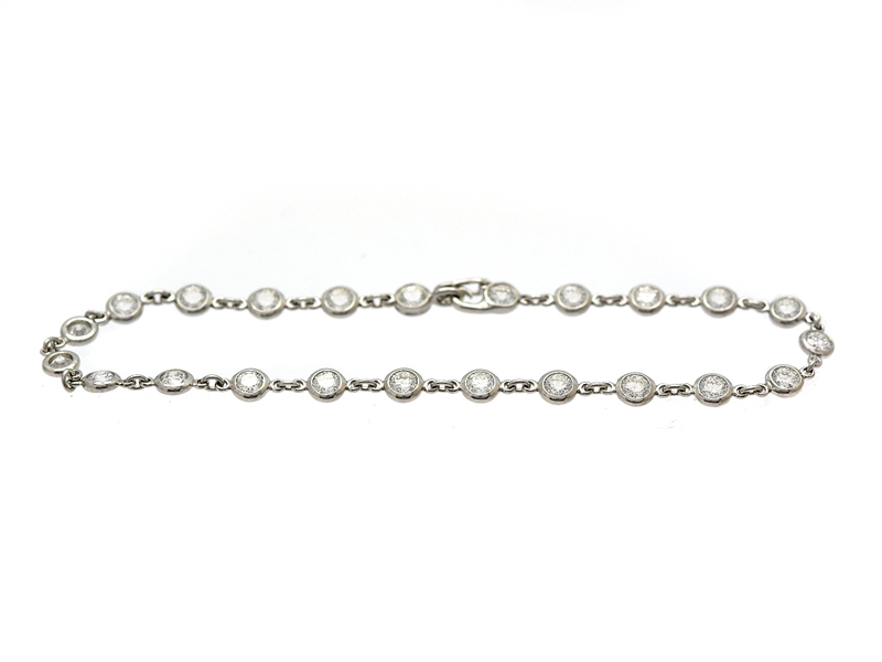 ELSA PERETTI för TIFFANY & CO., armband, platina, Diamonds by the yard, 23 sargfattade briljantslipade diamanter ca 1,60 ctv, ca TW(G)/VS, signerad Peretti, T&CO., längd 18.1 cm, vikt 5,4 g, påse.