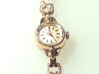 OMEGA, damur, 18K guld, manuell, safirglas, länk 18K guld längd 183mm, totalvikt 28.0 g.
