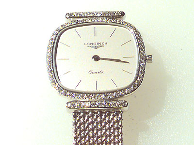 LONGINES, damur, 18K vitguld md åttkantslipade diam. quartz, nyligen genom-gången ca. 5 år, 2 länk bitar