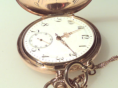 FICKUR, Savonett, 14K guld, kedja 18K guld, gravyr på mellanboett, box.