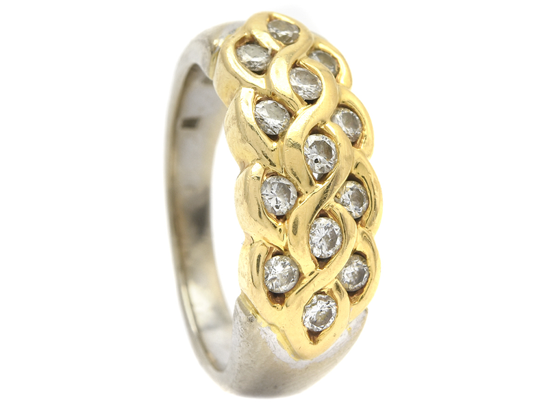 RING, 18K vitguld/guld, 13 briljantslipade diamanter ca 0,50 ctv, ca TW-W/SI, stl 17 mm, vikt 9,6 g.