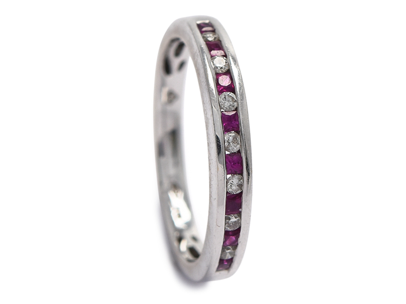 ALLIANSRING, 18K vitguld, 8 rubiner ca 0,24 ctv, 7 briljanter ca 0,14 ctv, ca W/VS-SI, stl 17 mm, vikt 2,7 g.