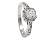RING, 18K vitguld, flandersslipad diamant ca 0,75 ct, ca TCa(K)/SI2, 26 briljantslipade diamanter ca 0,20 ctv, stl 16,75 mm, vikt 3,8 g.
