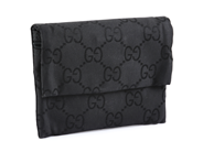 PLÅNBOK, GUCCI, svart tyg med monogram, 4st kontokortsfack, mynt, sedel, 15x11,5x2cm, originalask.