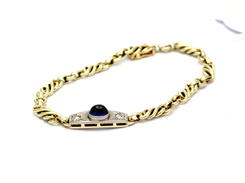 Armband 14K 14,5g 18,8cm med sten och diamanter äldre slipning 2xca.0,07ct
