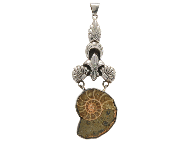 HÄNGE, silver, fossil av en ammonit, vikt 28,7 g.