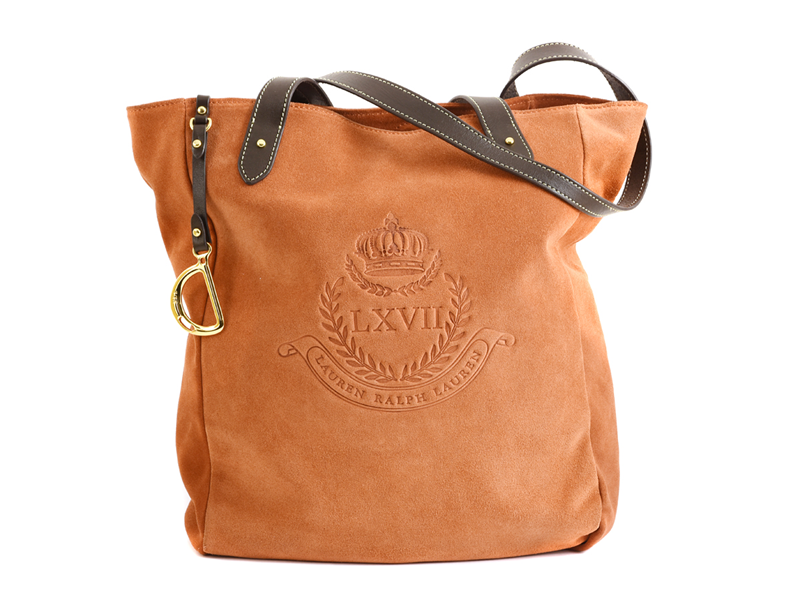 VÄSKA, LAUREN RALPH LAUREN, rostfärgd mocka, mörkbruna läder detaljer 28x32x10cm, dustbag