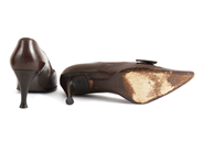 SKOR, SERGIO ROSSI, brunt läder, stl 38½, klack 8cm, gumetall detalj.