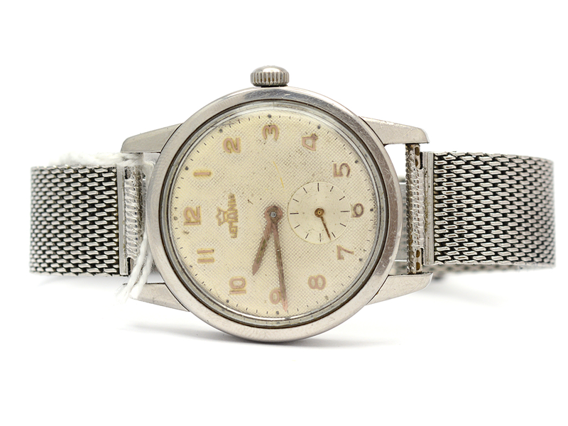 Lemania, herrur, manuell, liten sekundvisare, stål, plexiglas (repig), stållänk (ej orginal),