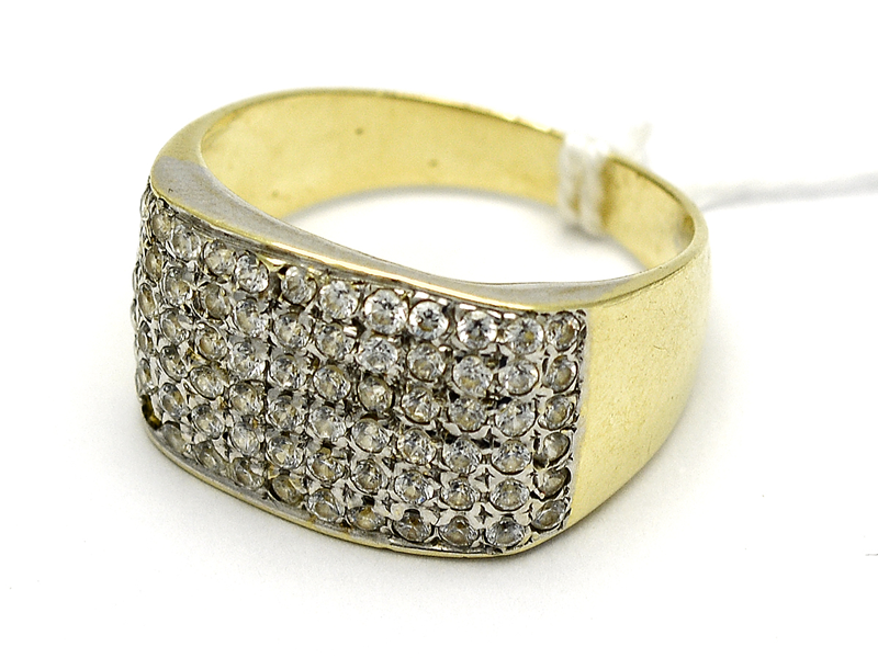 Ring 14K 5g tvåfärgad med stenar, saknas en Ø18½