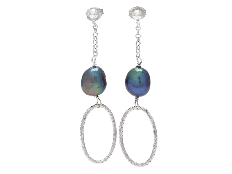 ÖRHÄNGEN, sterlingsilver, blå/grå färgade barocka sötvattenspärlor, längd ca 4,5 cm.