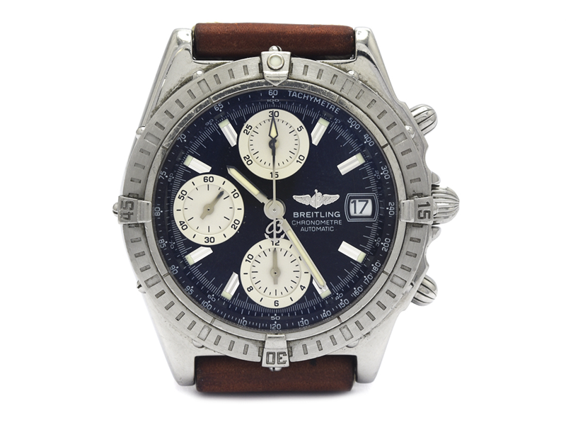 BREITLING, Chronomat, Chronometre, "Tachymetre", Cal 13 (ETA 7750), Verk nr. 258859, Serie nr. 258859, Ref nr. A13352, kronograf, herrur, 39 mm, stål, automatisk, safirglas, datum, skadad urtavla, läderband, ca 2000.