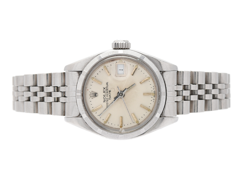 ROLEX, Oyster Perpetual, Date, Ref nr. 6919, Serie nr. 7305553, Cal 2030, Verk nr. 283412, Boett nr. 6900, damur, 26 mm, stål, automatisk, plexiglas (skadat), datum, skadad urtavla, Jubileelänk (skadad), viklås, Ref nr. 62510D-H1/568, ca 1983, box, ytterkartong.