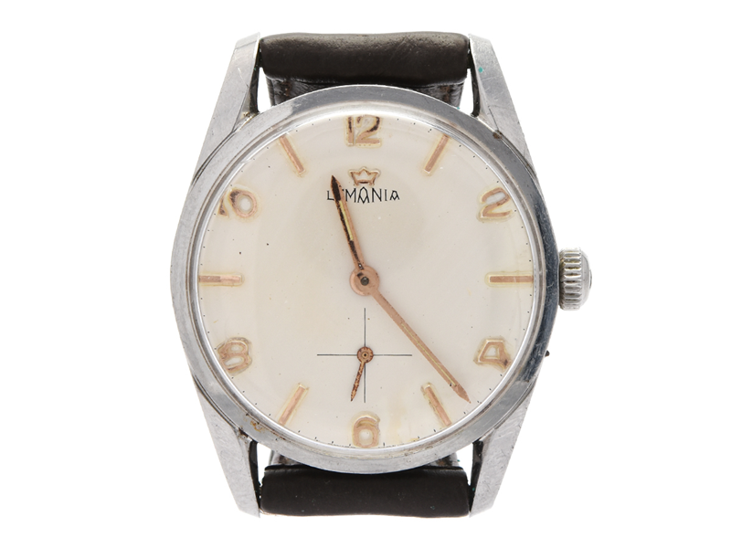 LEMANIA, herrur, 33 mm, Cal 3000, Serie nr. 1867167, Boett nr. 907, stål, manuell, plexiglas, liten sekundvisare, renoverad urtavla, skadad urtavla, skadad boett, läderband, ca 1965.