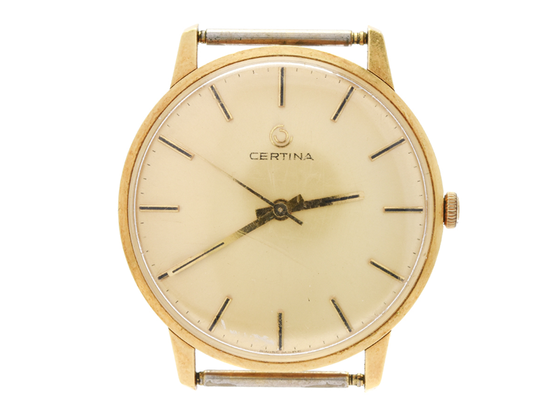 CERTINA, herrur, 34 mm, Cal 25-66 M, Boett nr. 851.3363.68, 18K guld, manuell, plexiglas, skadad urtavla, bucklor, ca 1970.
