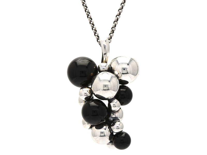 GEORG JENSEN, hänge/kedja, Moonlight Grapes, sterlingsilver, svart agat, längd 88 cm, vikt 27 g.