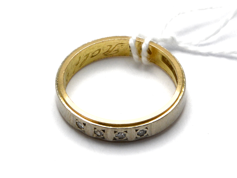 Ring tvåfärgad 18K 3,7g Ø16¼ med diamant 4xca0,01-0,02ct graverad