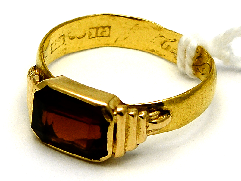 Ring 23K med sten. Skador och gravyr finns. 3,8g