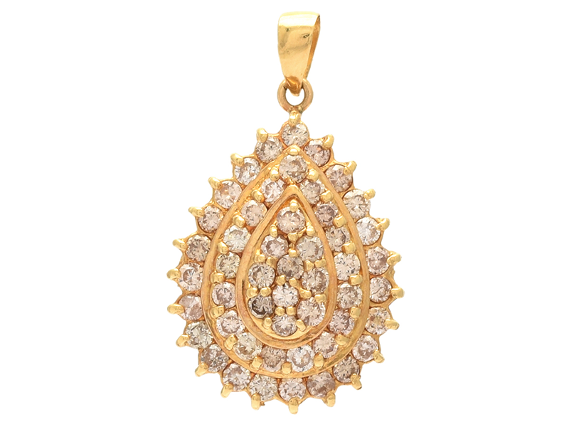 HÄNGE, 18K guld, 50 briljantslipade diamanter ca 1,00 ctv, ca Cr-Ca(J-M)/SI-P, bruna serien, stl 2,3 x 1,4 cm, vikt 3,2 g, svaga fattningar, flera diamanter med nagg på krona.