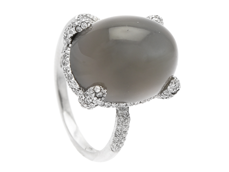 RING, 18K vitguld, månsten, briljantslipade diamanter ca 0,70 ctv, ca TW-Cr/SI-P, stl 17 mm, vikt 5,5 g, svaga fattningar.