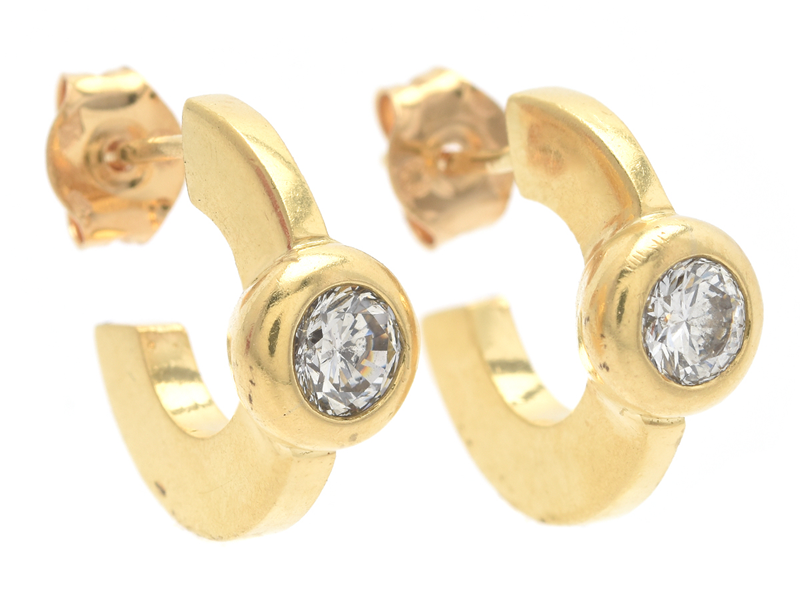 ÖRHÄNGEN, 18K guld, briljantslipade diamanter ca 0,46 ctv, ca W/SI, stift, höjd 14 mm, vikt 6,3 g.