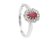 CARMOSÉRING, 18K vitguld, rubin, 10 briljantslipade diamanter ca 0,20 ctv ca W/SI-P, stl 19 mm, vikt 3,5 g.