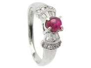 RING, platina, cabochonslipad rubin, 8 briljant- och 8 trapetsliapde diamanter 0,25 ctv, ca W/SI, stl 17,75 mm, vikt 5,1 g.