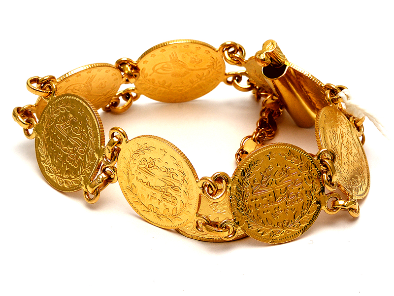 Armband med myntliknande föremål 21K 18cm 41,6g, med säkerhetskedja