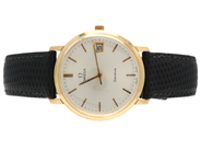 Omega Genève 14K quartz (batteri byte krävs) datum läderarmband ej original